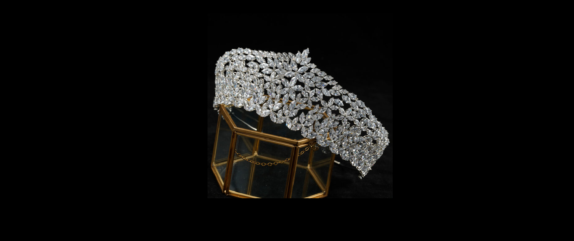 Sparkling headpiece crafted with intricate crystals that capture the light beautifully. Designed…