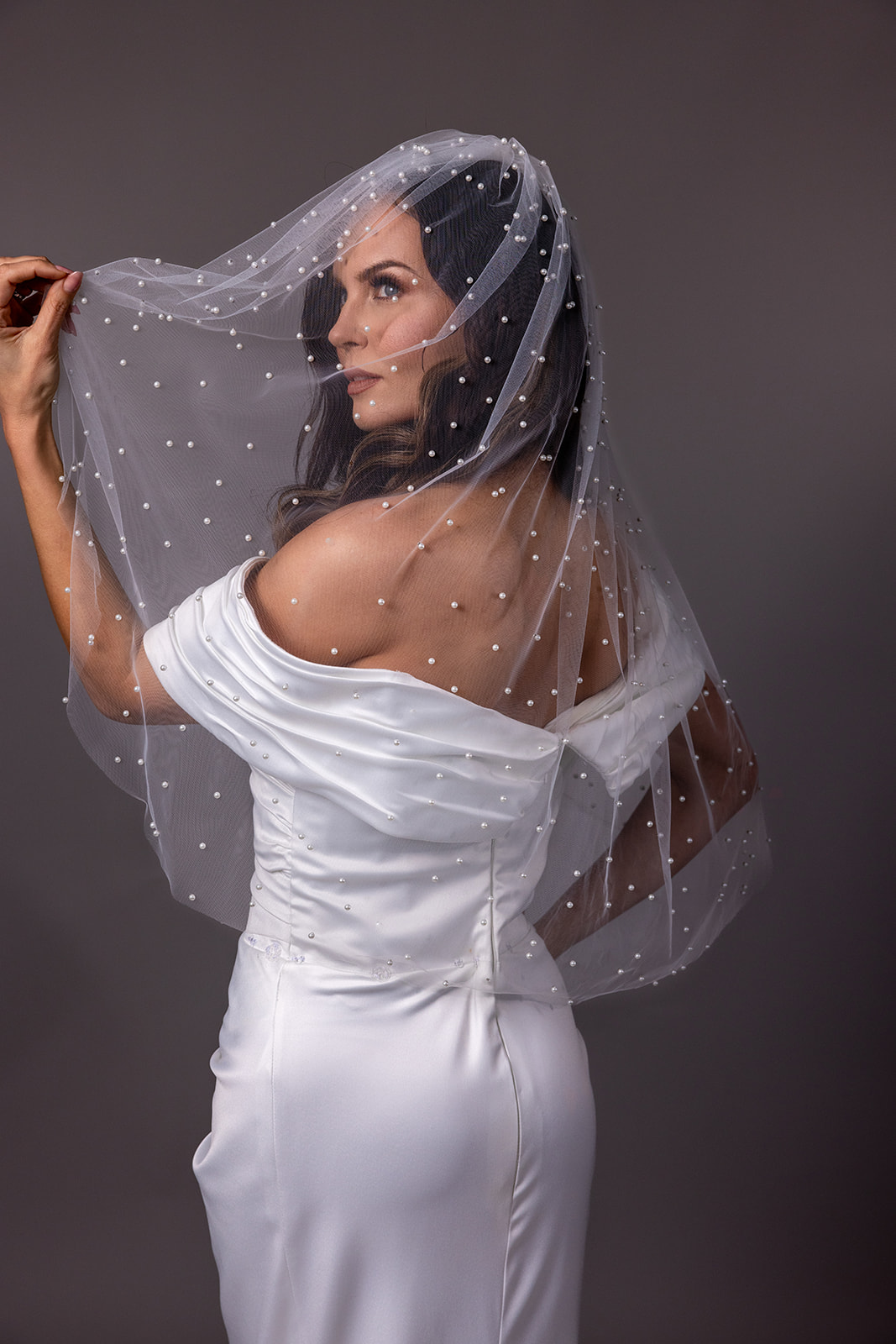 Add a timeless pearl accent to your bridal ensemble with our short veil. The simplicity of pearls makes a bold statement, ensuring you shine with understated beauty.