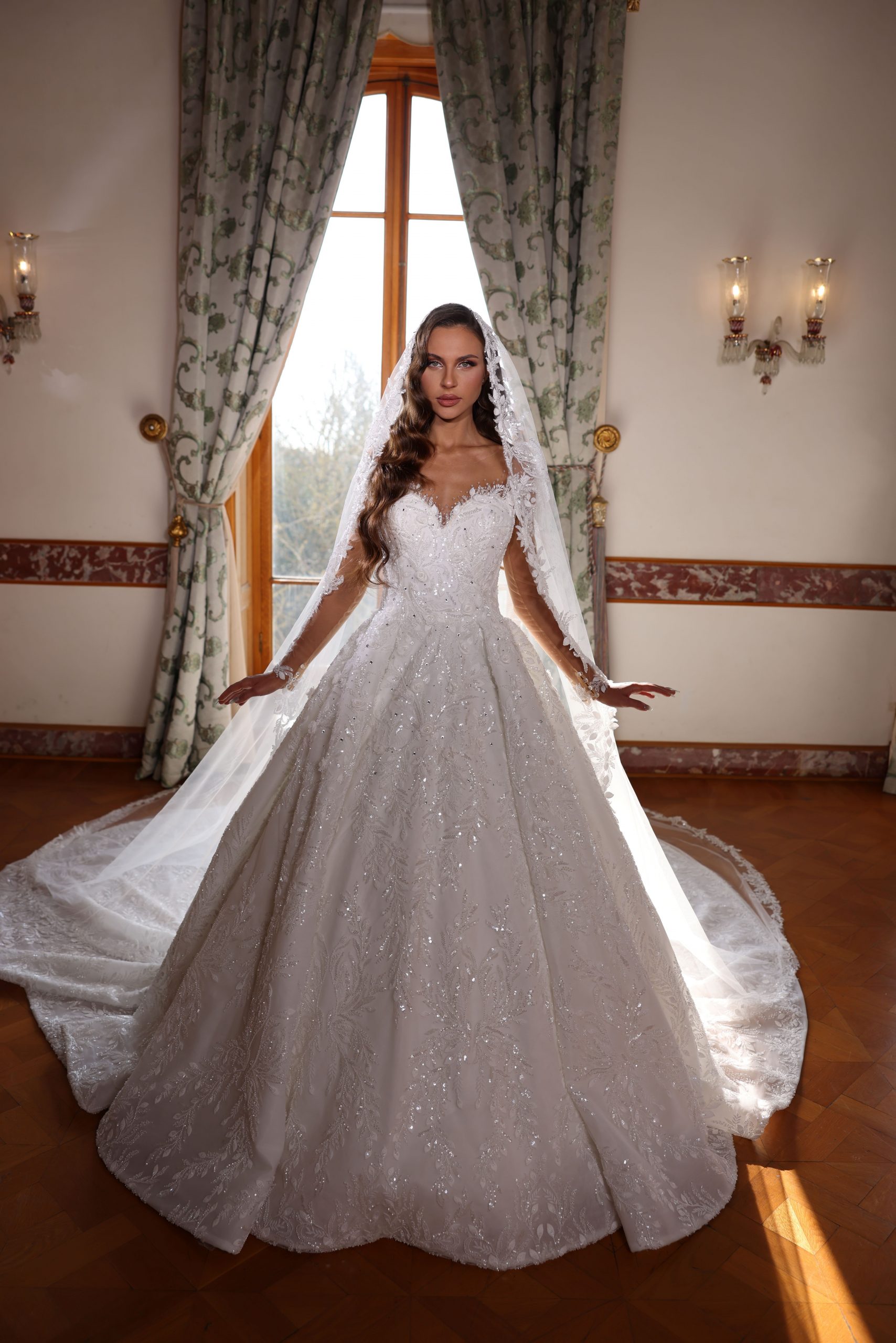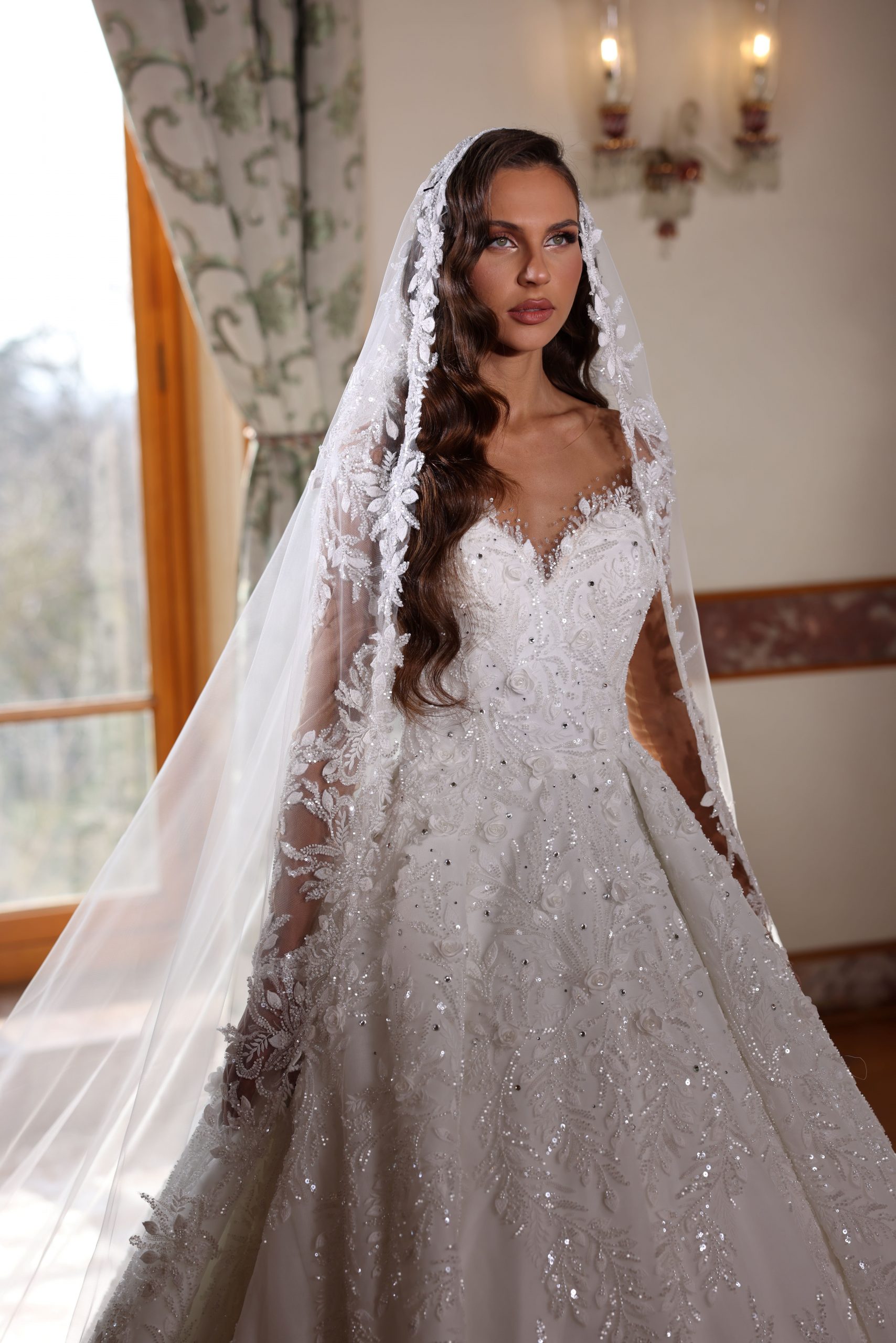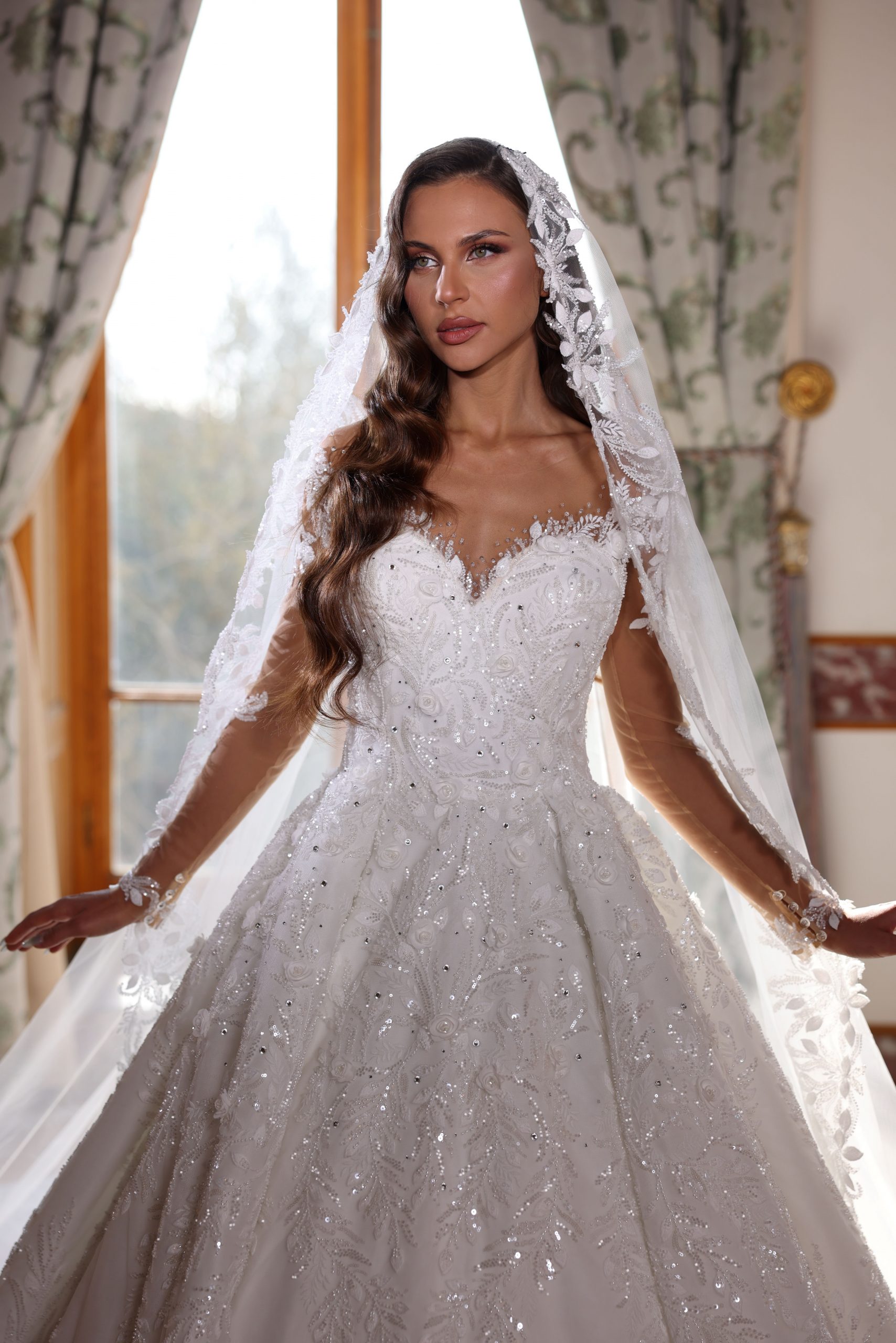 Your ultimate ballgown for your wedding day! Beautiful pleating, embroidery beading and rhinestones! Also 3D flowers, everything you need in a ballgown.