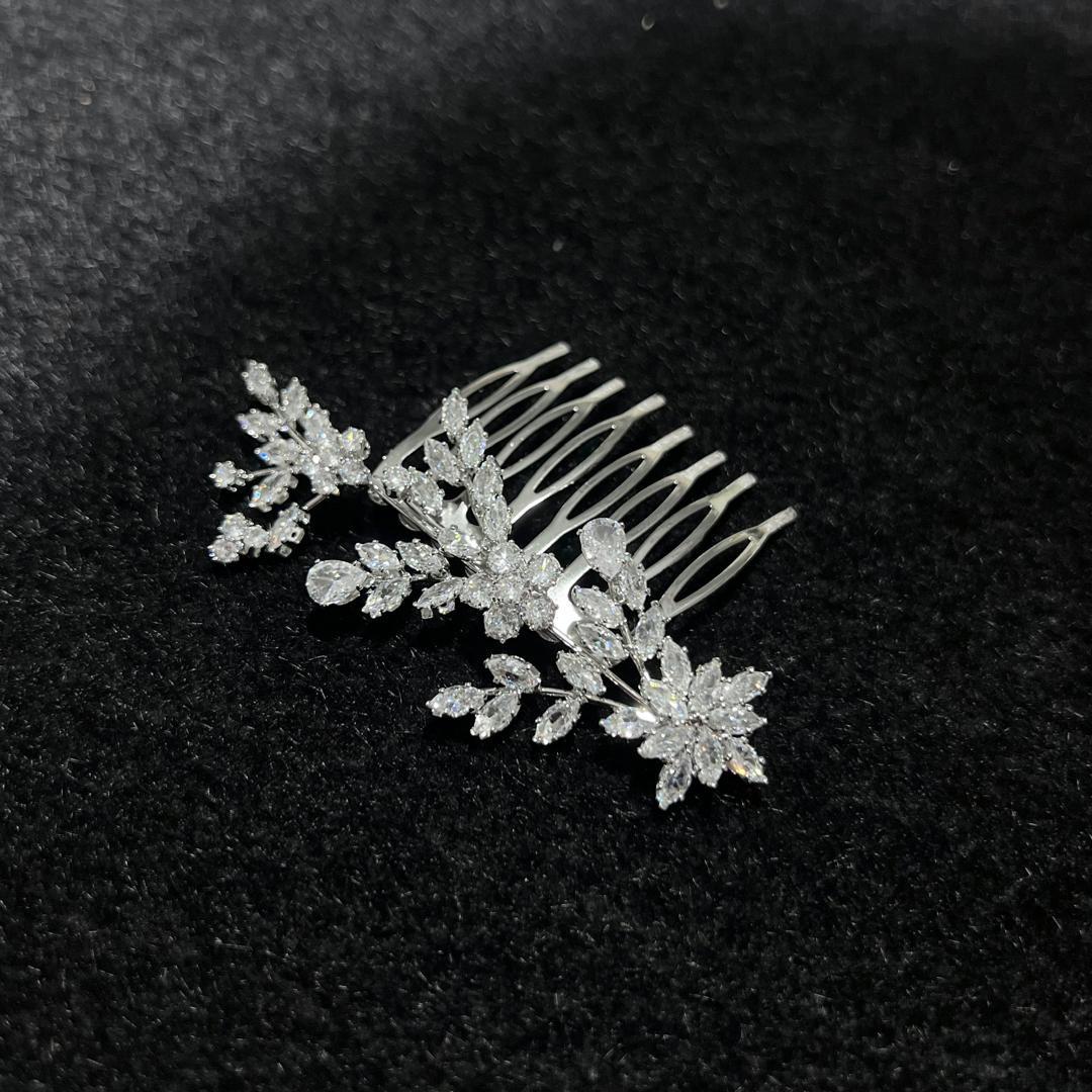 A small side hair comb for a bridal look is a delicate, often ornate accessory that adds elegance to a bride’s hairstyle.