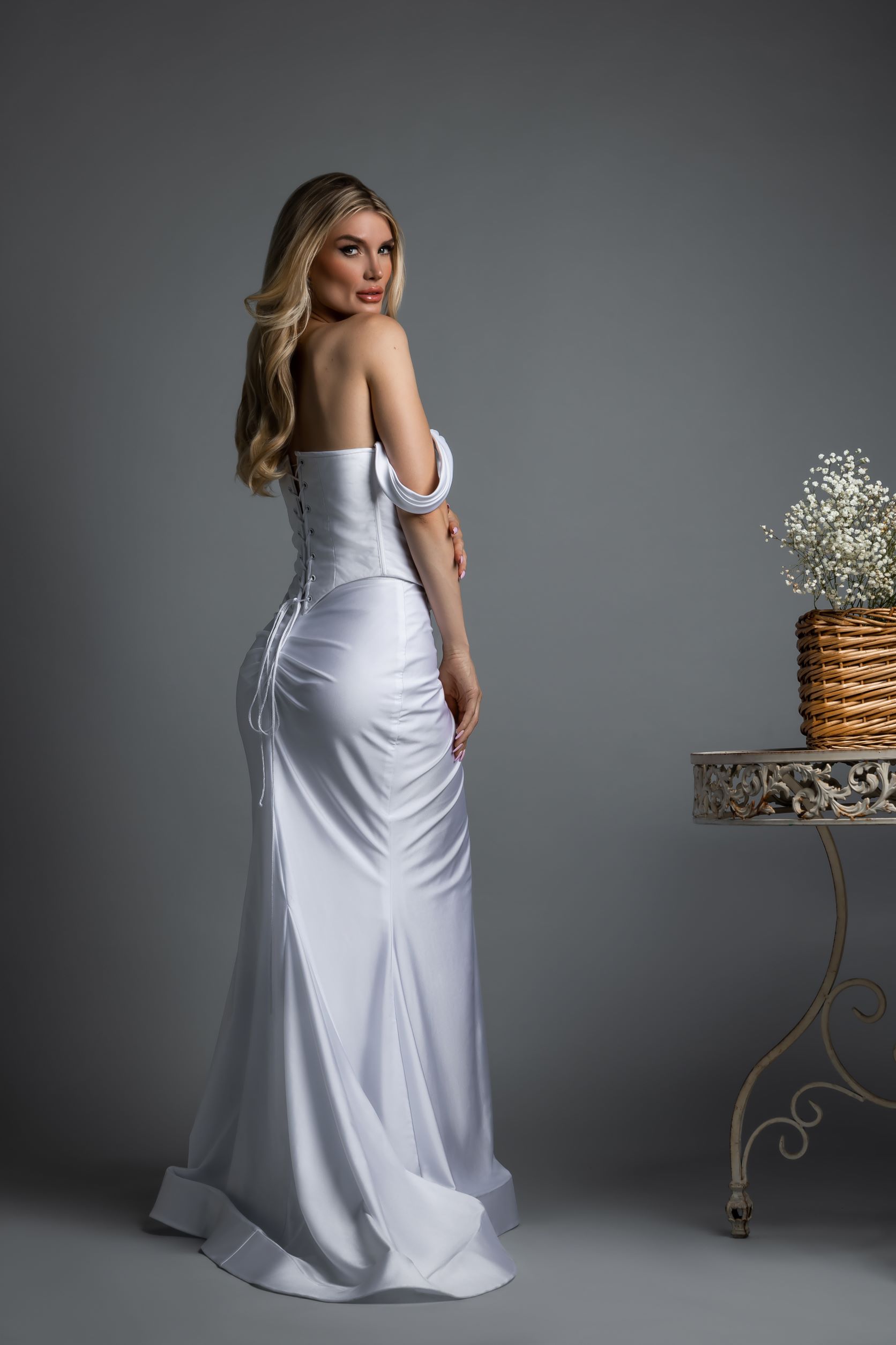 This soft, stretchy, and sexy gown is the perfect fit! With corset top, side slit and corset back. It is all about elegance and the fit when it comes to this mermaid spandex/nylon gown.