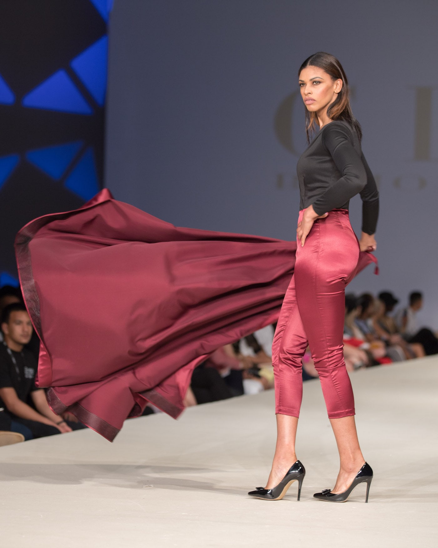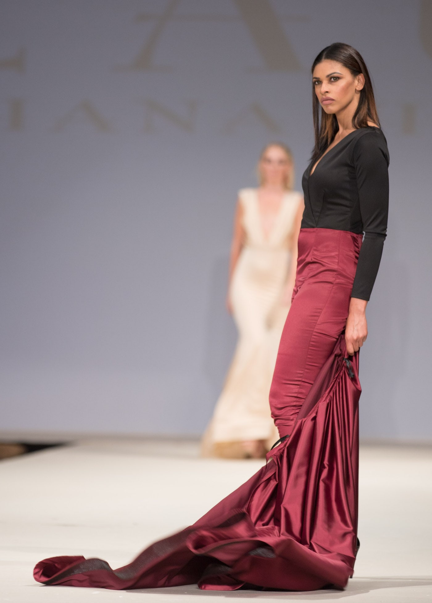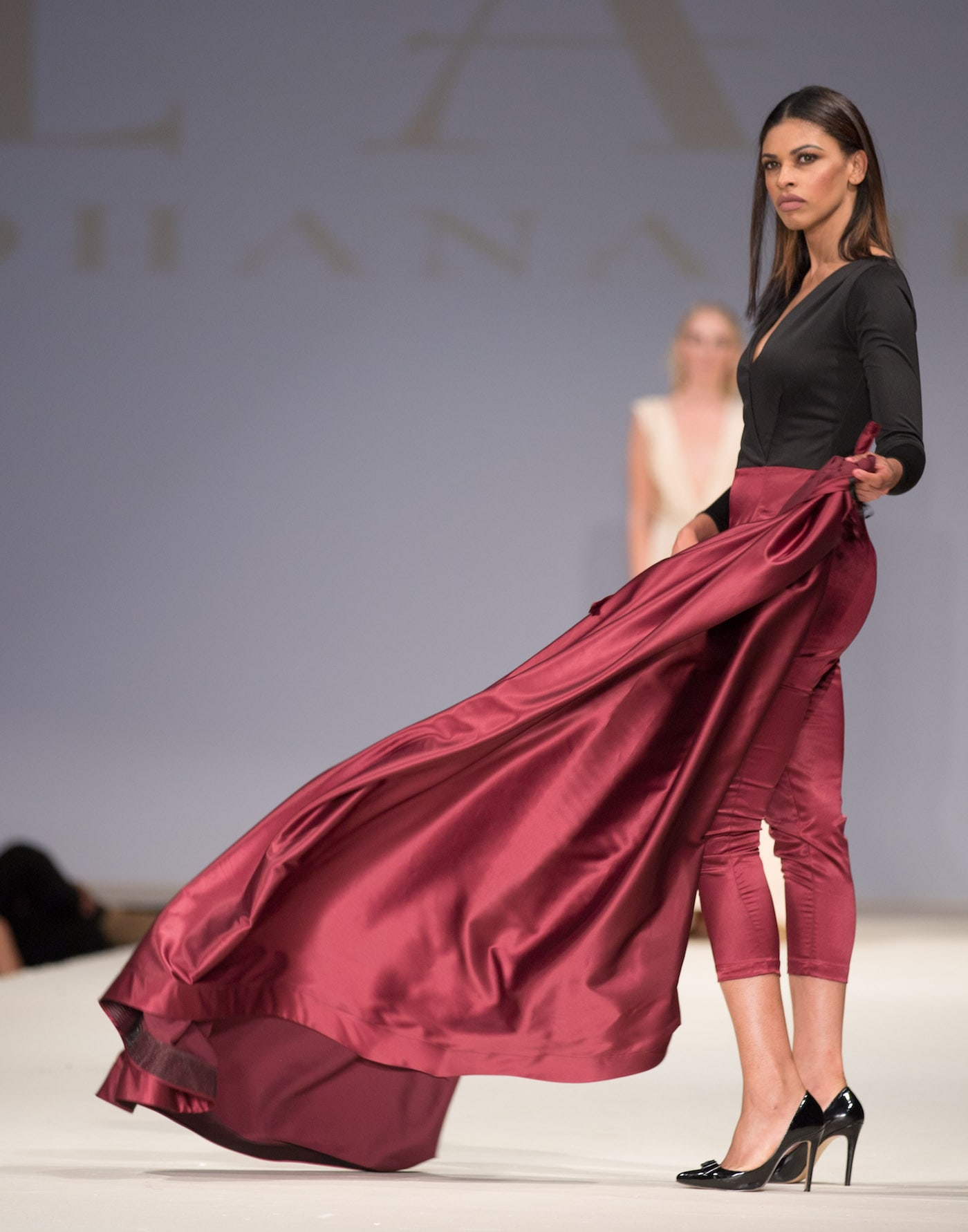 2 in 1 Jumpsuit Ball Gown- Stretch Satin pant jumpsuit ankle length with Ponti stretch knit top fabric long sleeve with snap on ball gown skirt.