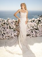 Sweetheart shape sheath gown with v cut in the front. Illusion back…