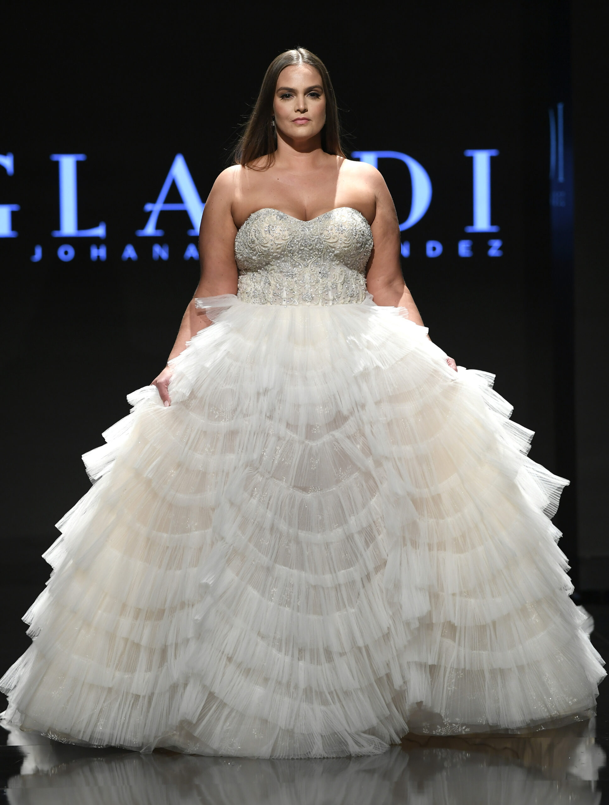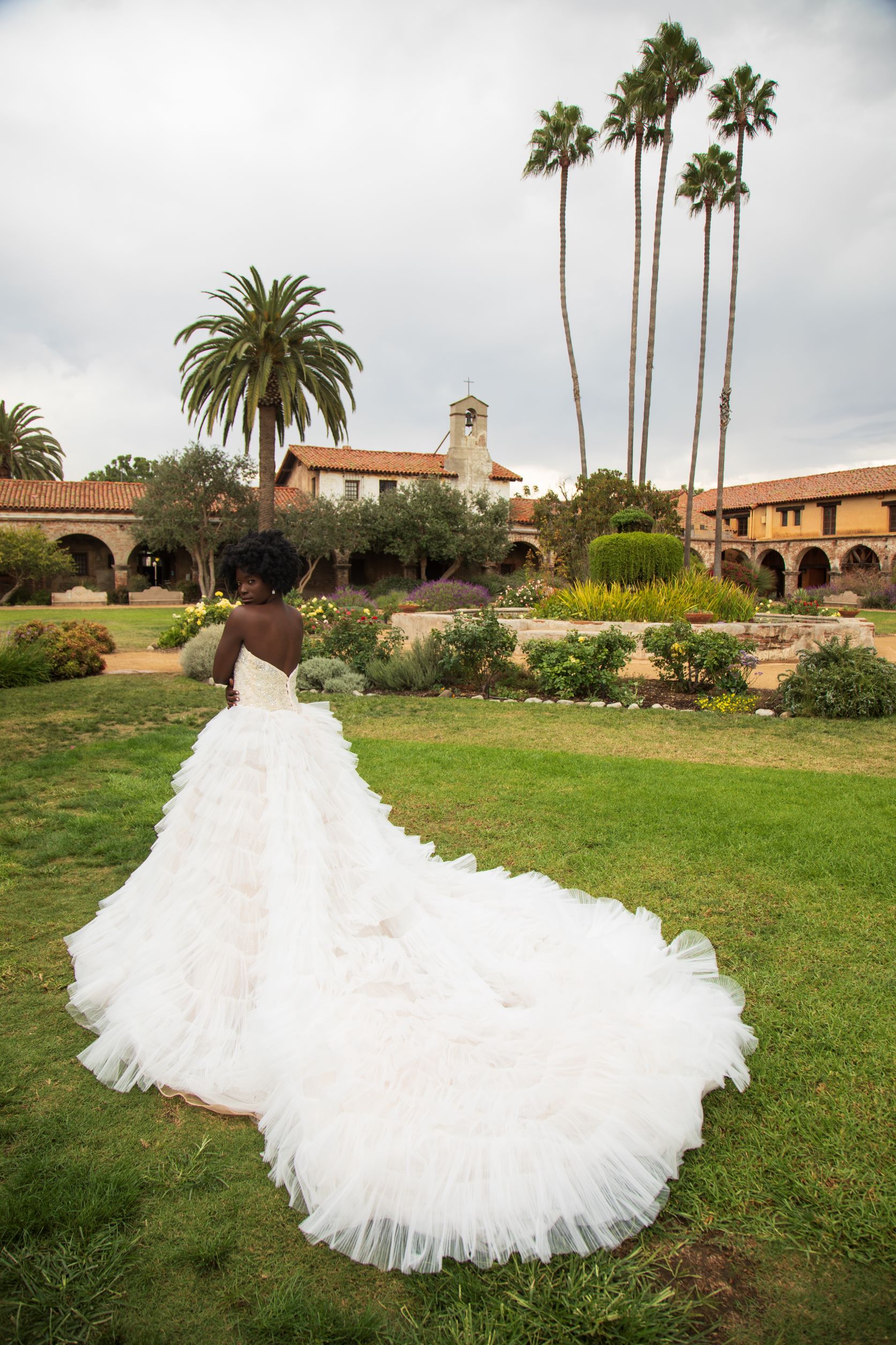 Our one of a kind ball gown is perfect for the bride that wants to wow! Our Stephanie dress has many fun, dramatic, and beautiful tiers on the skirt, and a sexy lace up corset.