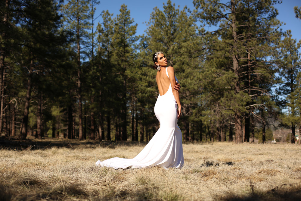 The perfect fitted mermaid gown for a lovely bride who wants to show off her shape and style. Princess seams for more fitting look. Thin straps and open back for a dramatic look that is unforgettable for you and your guest.
